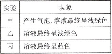 9. 某同学探究“金属、酸的化学性质”,完成实验甲、乙、丙并记录部分现象如表所示。下列说法正确的是(
