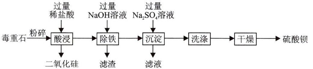 6. 硫酸钡是白色固体,医疗上常用作透视肠胃的内服剂。以毒重石(主要成分是碳酸钡,还含少量氧化铁和二氧化硅)为原料生产硫酸钡的工艺流程如图所示。