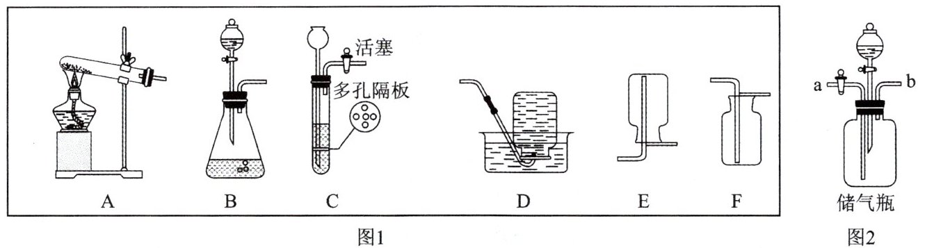 ;若用图 2 的“储气瓶”收集氧气,气体应从a
