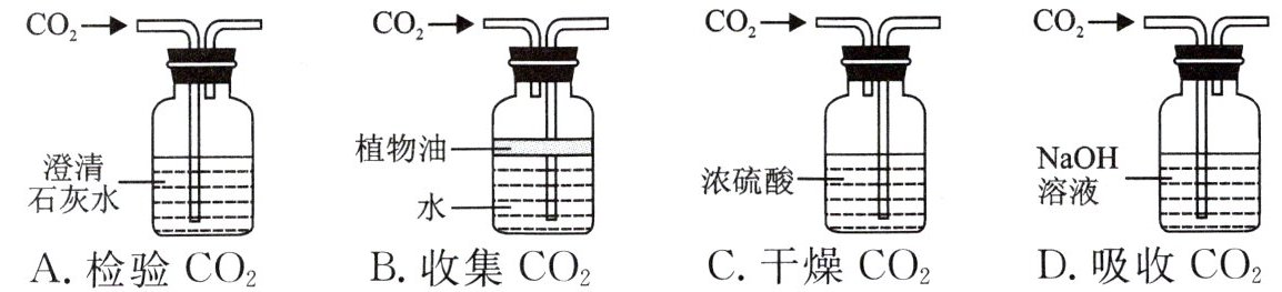 2. 实验设计是培养证据推理能力的重要手段。下列有关$CO_2$的实验设计中,达不到实验目的的是(