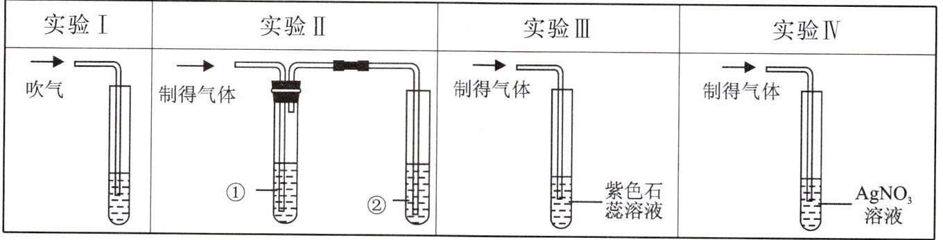 (2)实验Ⅲ中紫色石蕊溶液变红,但小组中有一位同学认为不能用紫色石蕊溶液证明$HCl$的存在,原因是
