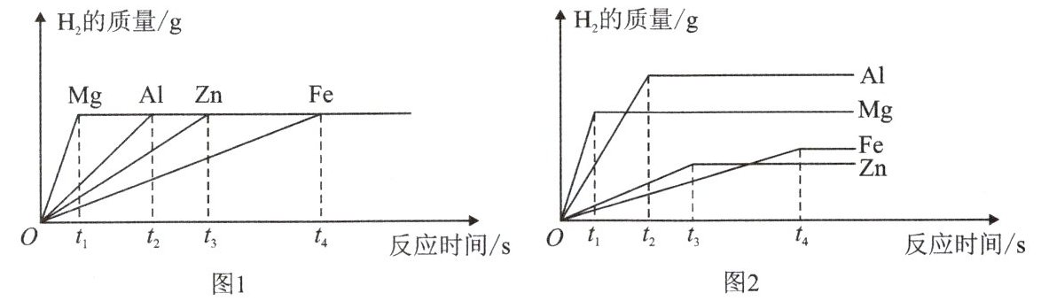 (1)金属过量,酸不足时,生成H₂质量由酸的质量决定,最终生成氢气质量一定相等,如图1所示。
