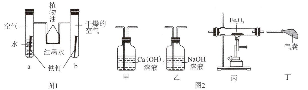 B.对比图1试管a、b中的现象可推知,铁生锈的条件之一是与水接触