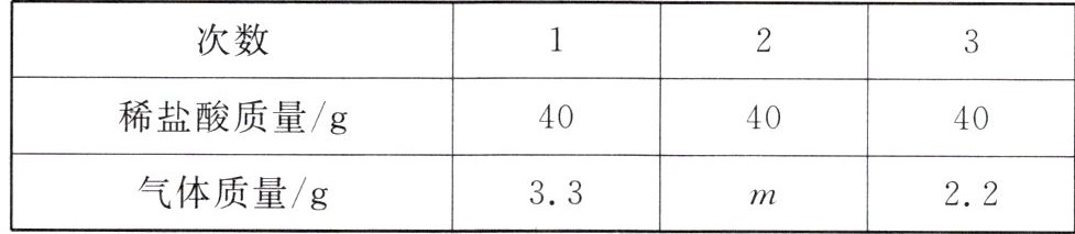 8.某化学兴趣小组的同学为了测定某矿石中碳酸钙的质量分数,取该矿石样品$25g$,分三次加入稀盐酸$120g$,充分反应后,实验数据如下: