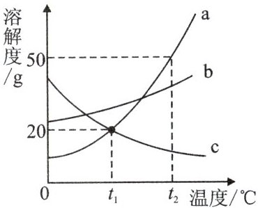 )。A.在$t_{1}$℃时,a、c 两种物质的溶解度相等