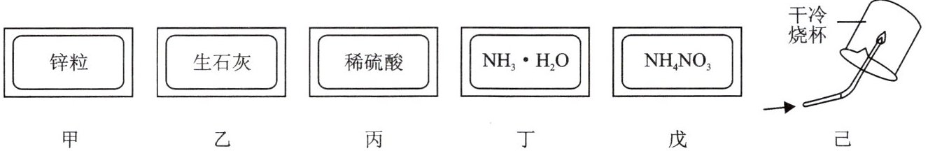 。(3)如上图己所示,在带尖嘴的导管口,点燃纯净的用甲和丙反应制取的气体,然后在火焰上方罩一个冷而干燥的小烧杯,可观察到的实验现象是