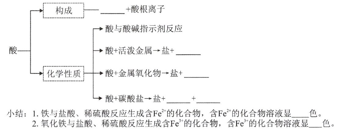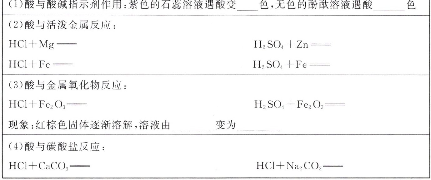 1. 酸的化学性质。(除了酸碱指示剂变色,其他均写化学方程式)