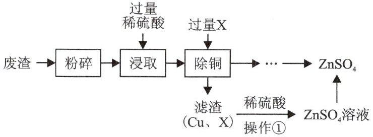 6. 某工厂产生的废渣(主要成分为$\mathrm{ZnO}$,杂质为$\mathrm{CuO}$)可用于制备$\mathrm{ZnSO_4}$,其工艺流程如图。
