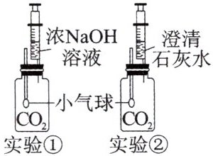 7. 用如图所示实验探究碱的性质。用注射器分别推入等体积的溶液,观察到实验①中气球明显变鼓,实验②中气球略微变鼓。下列说法错误的是(