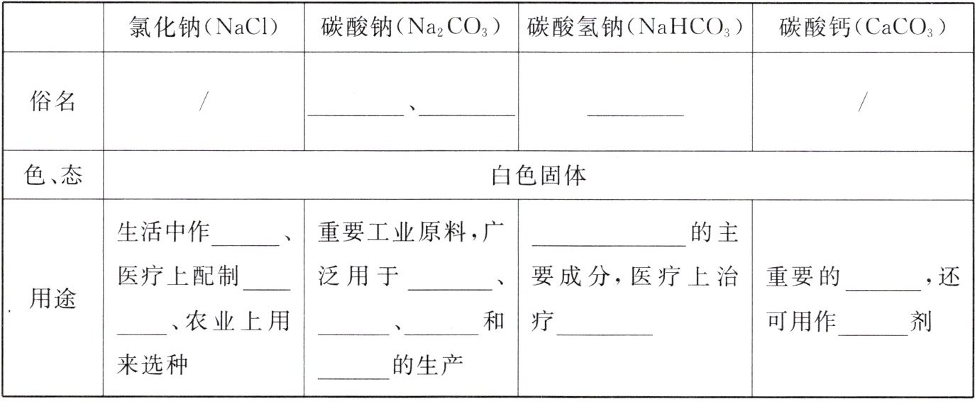 2. 常见的盐的物理性质及用途。