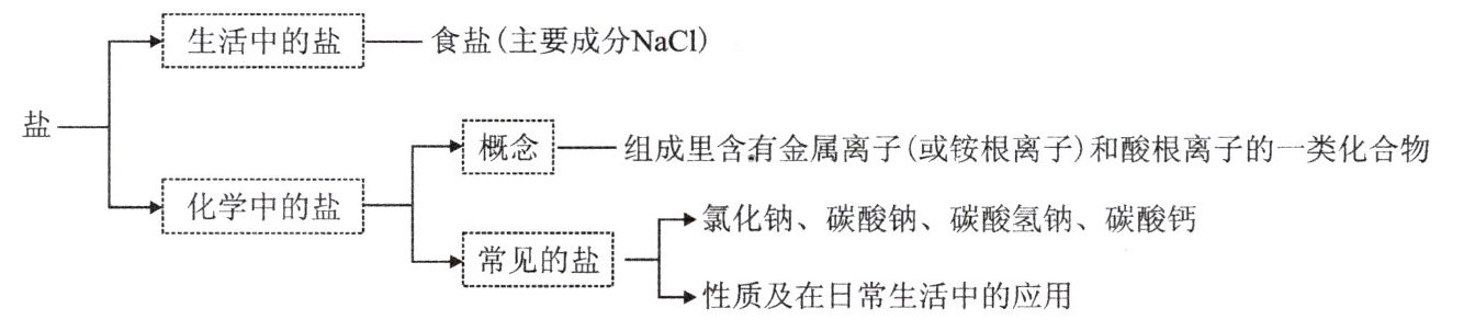 2. 化学中盐的概念:由金属离子(或铵根离子)和酸根离子组成的化合物。