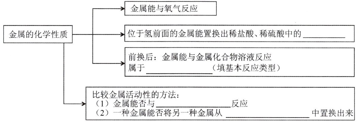 的金属能置换出稀盐酸、稀硫酸中的氢。(3)在金属活动性顺序里,位于