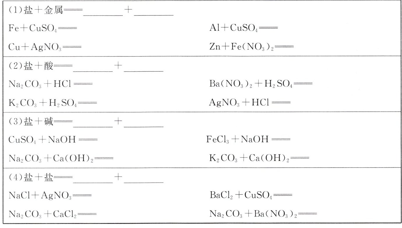 1. 盐的化学性质。