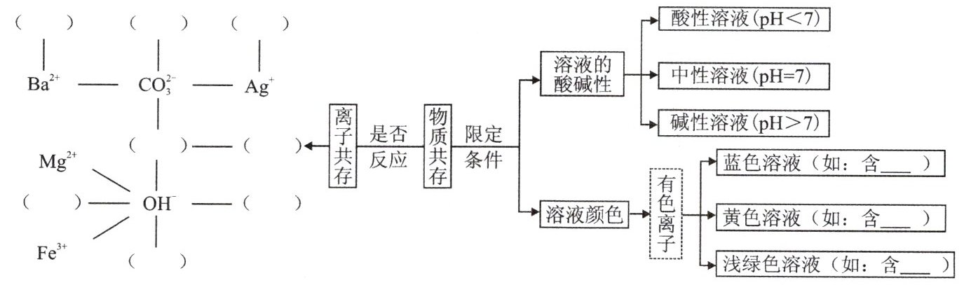 1. 根据复分解反应发生的条件,离子间若能互相结合生成沉淀或气体或水,则离子不能共存。