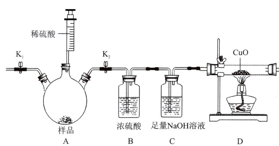 (3) 向装置 A 中加入稀硫酸,观察到有大量气泡产生,溶液由无色变浅绿色,小杭同学认为样品中一定含有单质铁,小月同学认为小杭的判断不合理,理由是