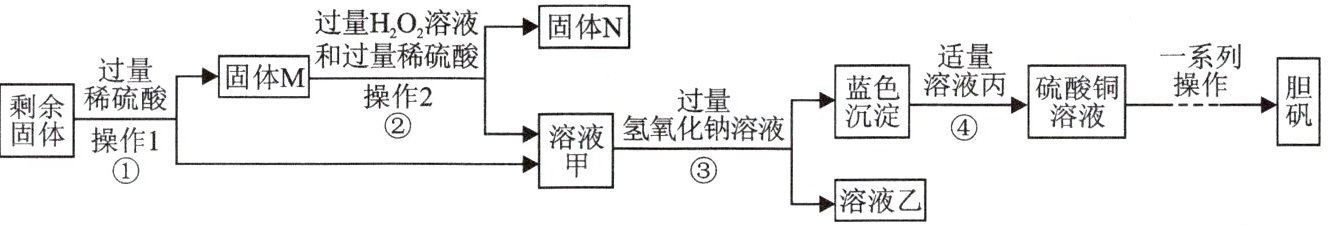 。(2) 步骤②中反应的化学方程式为 $ Cu + H_2 SO_4 + H_2 O_2 = CuSO_4 + 2 X$,则 X 的化学式为