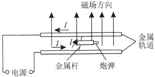6. 一种新型武器——电磁炮的原理简化图如图所示。炮弹上固定的金属杆和金属轨道接触,并与电源构成闭合电路,通电后金属杆就会受到向右的力,于是将炮弹发射出去。下列设备与电磁炮的工作原理不同的是(