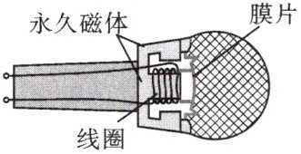 C.由于膜片带动线圈左右振动,线圈中就会产生方向变化的电流