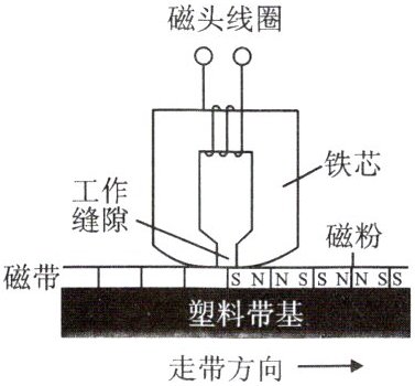 。磁带划过磁头时,磁带上的小颗粒被强弱不同地磁化