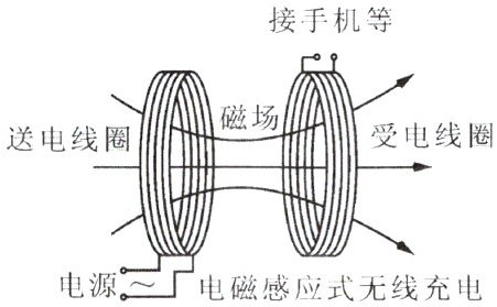 6. 手机无线充电方便了人们的生活,其中电磁感应无线充电是应用最多的无线充电方案。如图,它的原理是送电线圈通过一定频率的交流电,线圈的周围形成交变的磁场,通过电磁感应在受电线圈中产生一定的感应电流,从而将能量从发射端转移到接收端。下列选项中和受电线圈工作原理相同的是(