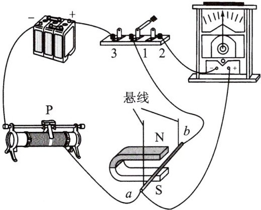 (选填“发电机”或“电动机”)是利用此原理工作的。(2)为使导体$ab$运动加快,可将滑动变阻器的滑片向