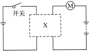 6. 某汽车启动电动机的电路如图所示。当启动器开关闭合时,有细小电流通过器件$ X$,接着有强大电流通过电动机,并将电动机启动。请你根据所学知识想一想,$ X$可能是(