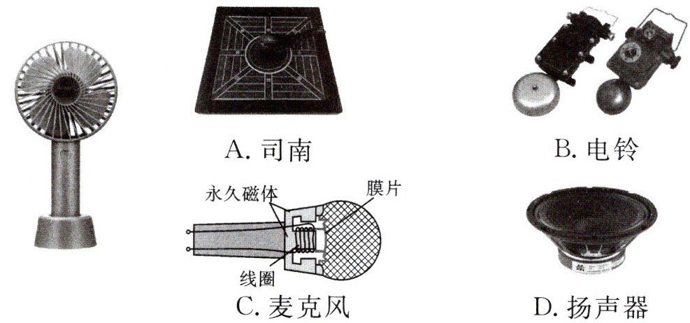 8. 下面的左图是$ USB$迷你电风扇,右边装置中与它的核心部件(电动机)原理相同的是(