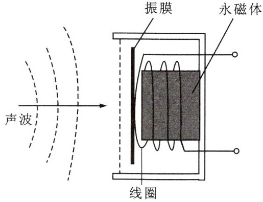 7. 动圈式话筒的部分结构如图所示。声波使振膜左右振动,连接在振膜上的线圈也随之一起振动,切割永磁体的磁感线产生电流,此过程中(