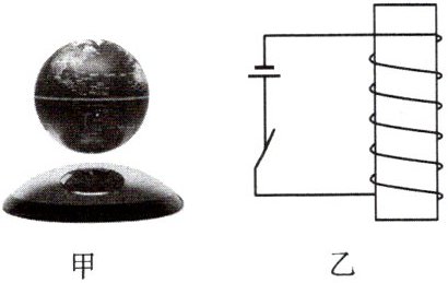 12. 图甲是利用磁悬浮原理浮在空中的地球仪,地球仪底部有磁体,底座内装有电磁铁,电磁铁的原理如图乙所示,下列说法正确的是(
