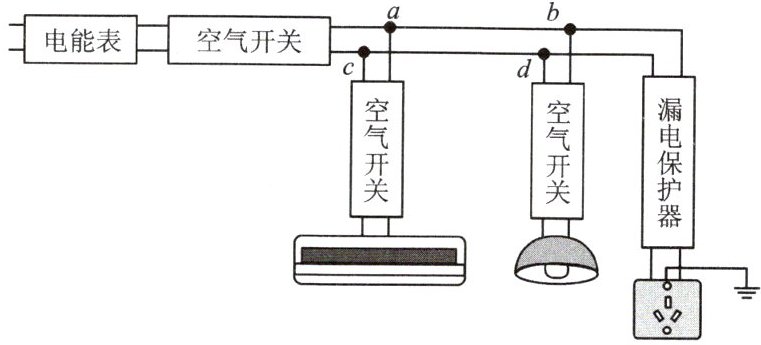11. 现在一般标准住宅户内,配电系统都使用了空气开关、漏电保护器、三孔插座等设备。有配电系统如图所示。空调能正常工作,但灯泡不亮,用测电笔接触插座左右两孔,氖管都发光,出现故障的原因最可能是(