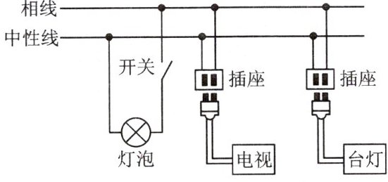 4. 某家庭部分电路可简化成如图所示的电路图,当灯泡、电视和台灯三个用电器均工作时,它们之间的连接方式是(