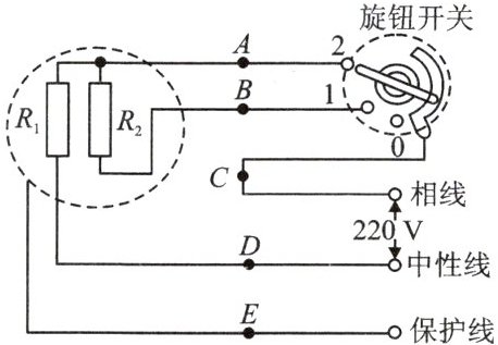 $ V$。(2)如果$R_1=R_2=60.5\ \Omega$,则电热器在旋钮开关接静触点“0”和“1”时的电功率分别为