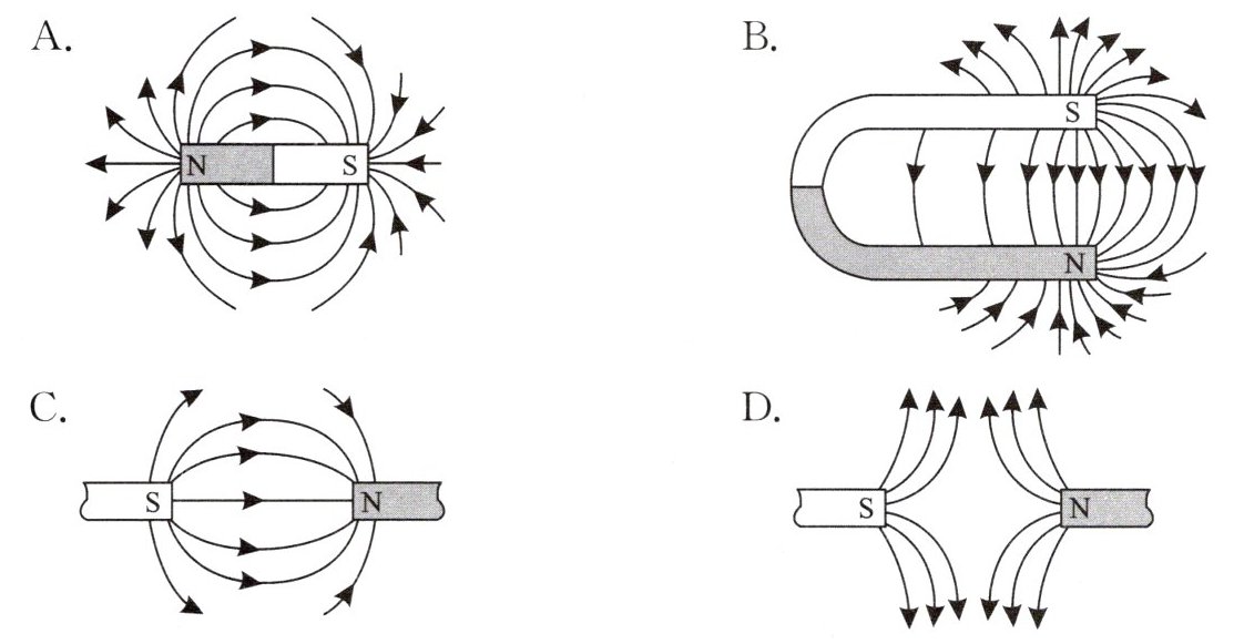 4. 物理学是美的,许多物理现象都具有对称美、平衡美和曲线美。下列优美的曲线中,用磁感线描述磁体外部磁场正确的是(