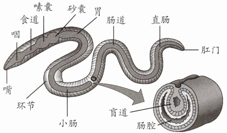 2. 食物进入蚯蚓咽头后发生了变化,请用简要的词句写出过程:_。