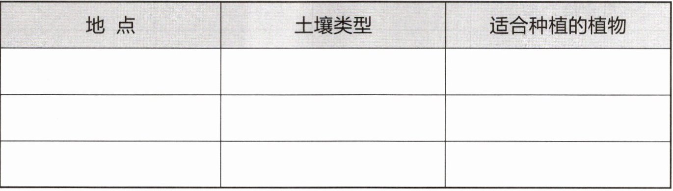 在爸爸妈妈的陪同下,调查家乡的土壤情况,完成表格。