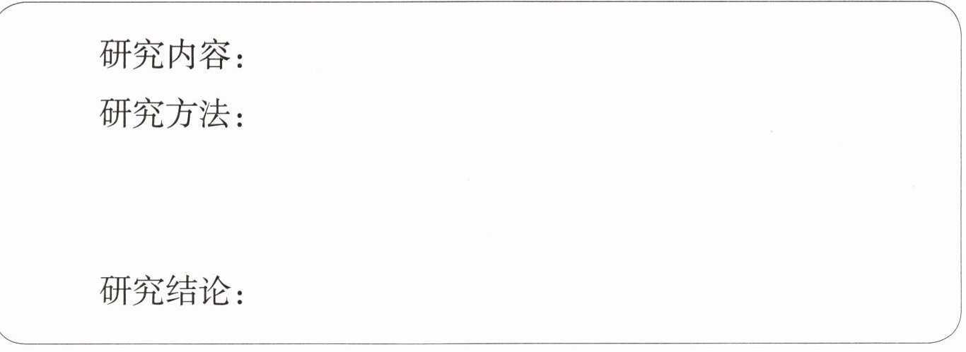 答案不唯一,如:冰川移动、小树长高、地球板块运动等。研究内容、研究方法、研究结论略。