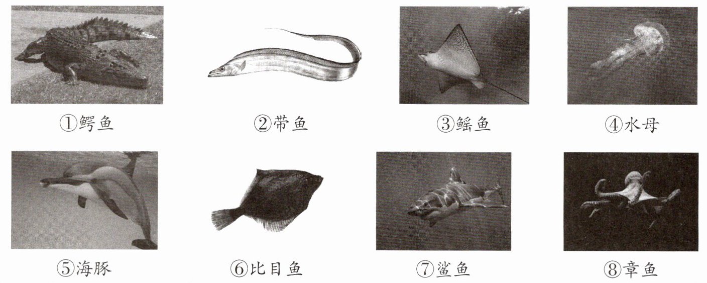 )。①生活在水里 ②身体表面有鳞 ③用鳃呼吸