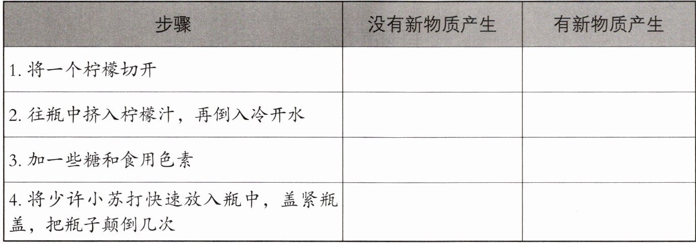 1. 判断制作柠檬汽水的过程中有没有新物质产生,在空格里打“√”。