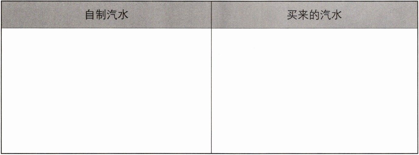 2. 品尝自制汽水和买来的汽水,感觉有什么不同?写一写。