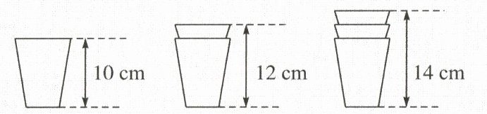 11. 有一种塑料杯子的高度是 $10$ $cm$,两个以及三个这种杯子叠放时的高度如图所示,则 $n$ 个这种杯子叠放在一起的高度是