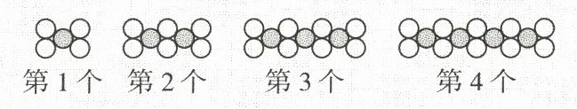 14. 如图,一组有规律的图案由若干个大小相同的圆片组成。第 1 个图案中有 4 个白色圆片,第 2 个图案中有 6 个白色圆片,第 3 个图案中有 8 个白色圆片,第 4 个图案中有 10 个白色圆片,……依此规律,第 $n$ 个图案中有