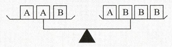 9. 如图,图中标有相同字母的物体的质量相同,若A的质量为20g,则当下图中的天平为平衡状态时,B的质量为