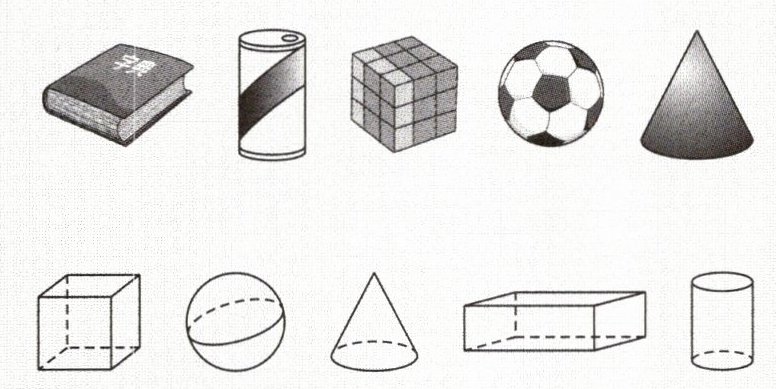 4.如图,物品的形状类似于哪种几何体?把物品与相应的几何体用线连起来。