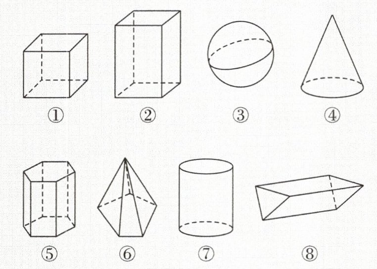 3.如图,下列一共有8个几何体。
