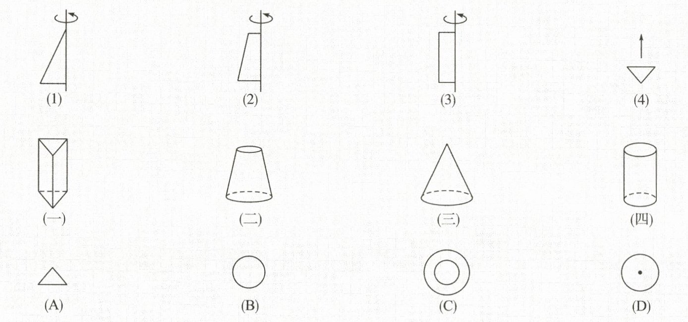 16. (8分)用数学的眼光去观察问题,你会发现很多图形都能看成是动静结合、舒展自如的。下面所给的三排图形都存在着某种联系,用线将它们连起来。