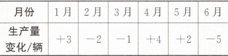 (2)这6个月增加和减少量的和是3+(−2)+(−1)+4+2+(−5)=1(辆),因此实际总生产量比计划多了,多生产了1辆,这半年内实际总生产量是6×20+1=121(辆)。