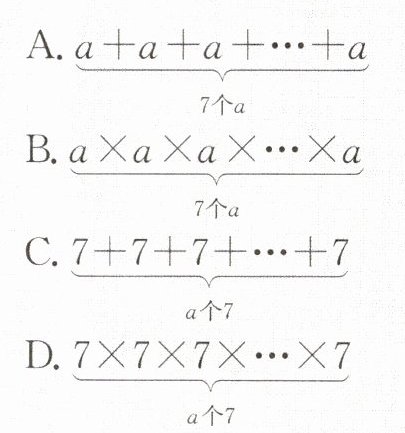 )A.$\underbrace{a + a + a + \cdots + a}_{7个a}$