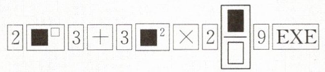 $\boxed{2}\boxed{■^{□}}\boxed{3}\boxed{+}\boxed{3}\boxed{■^{2}}\boxed{×}\boxed{2}\boxed{\dfrac{■}{□}}\boxed{9}\boxed{EXE}$