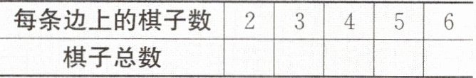 (1)按照上图的方式依次添加每条边上的棋子数量,并填写下表: