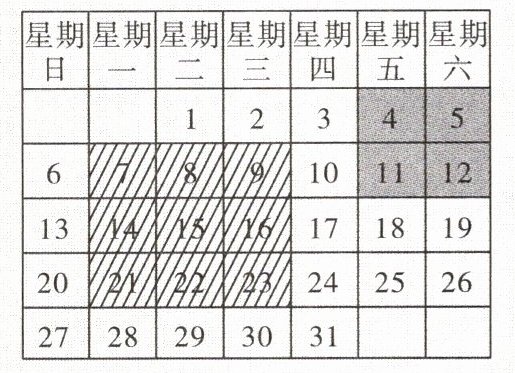 8. 观察图中的日历图,其中用粗实线框出的六个小正方形恰好是一个正方体的展开图。